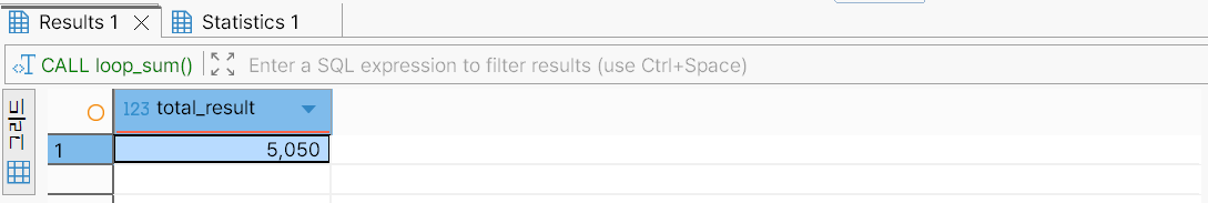 다음 코드 블록의 loop_sum 프로시저는 1부터 100까지의 합을 조회한다.