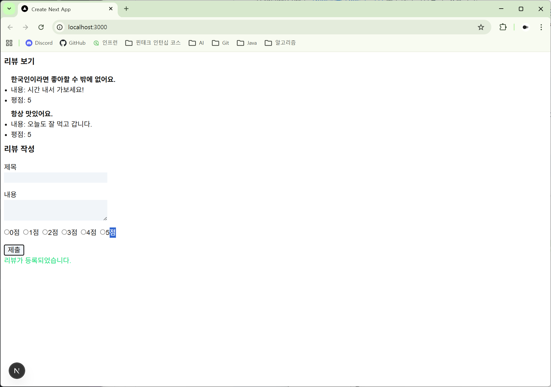 {state.successful && <p className="text-green-400">리뷰가 등록되었습니다.</p>}